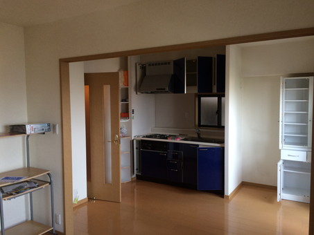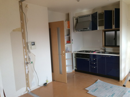 壁撤去、撤去部分のフローリング・壁紙張り替え工事の施工写真です。